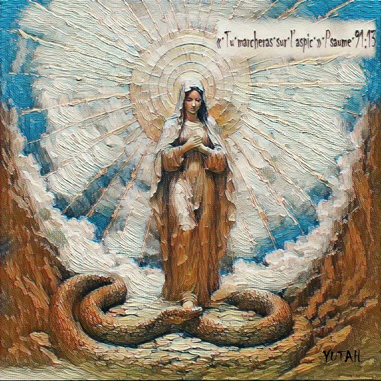 This resonates with Genesis 3:15, where God speaks of the seed of the woman crushing the serpent’s head.